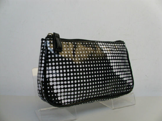 • Dots printed canvas with PVC coating cosmetic bag.