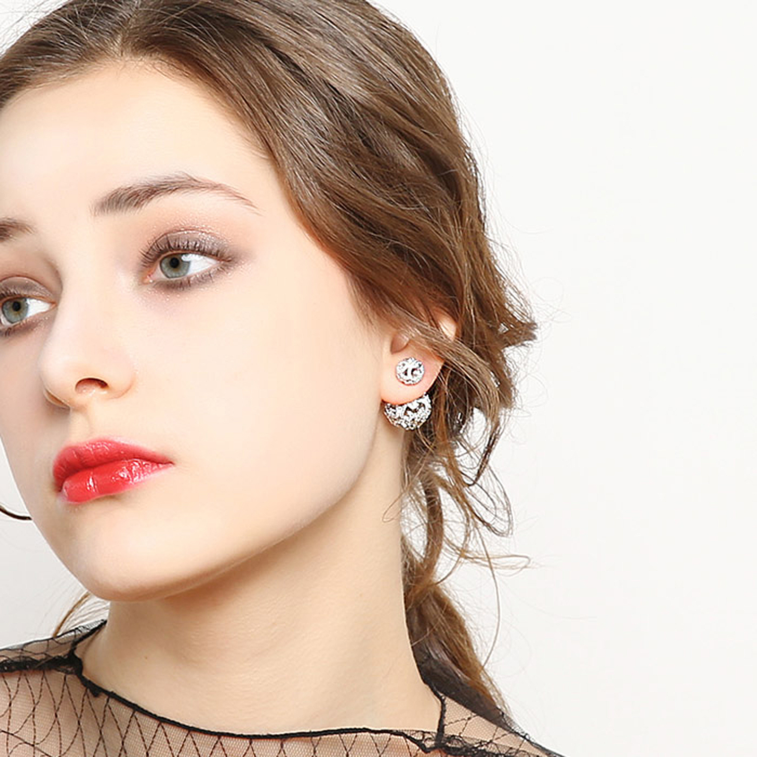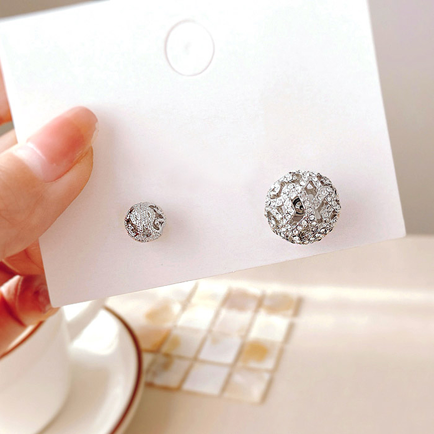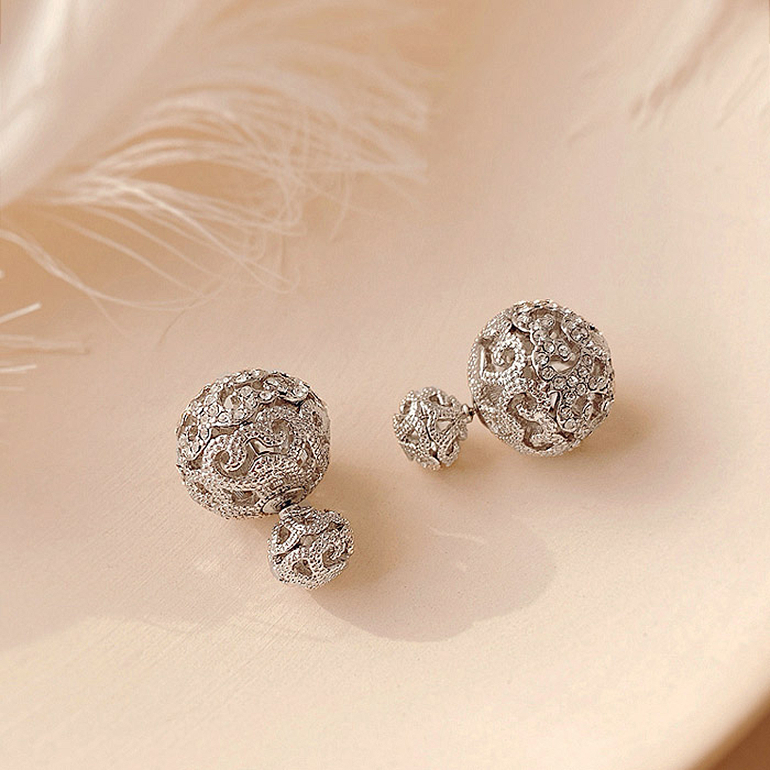 Double Ball Pave Diamond Stud Earrings, Micro Pave Ball Earrings, Front Back Earrings, CZ Pave. This Double Ball Pave Diamond Front Back Earrings is a perfect finding for DIY jewelry making and can be used in many different ways and designs. It is made of Brass, White Gold Plated, and AAA grade Cubic Zirconia. You may custom made the order on the sizes of balls you wish to place the order.