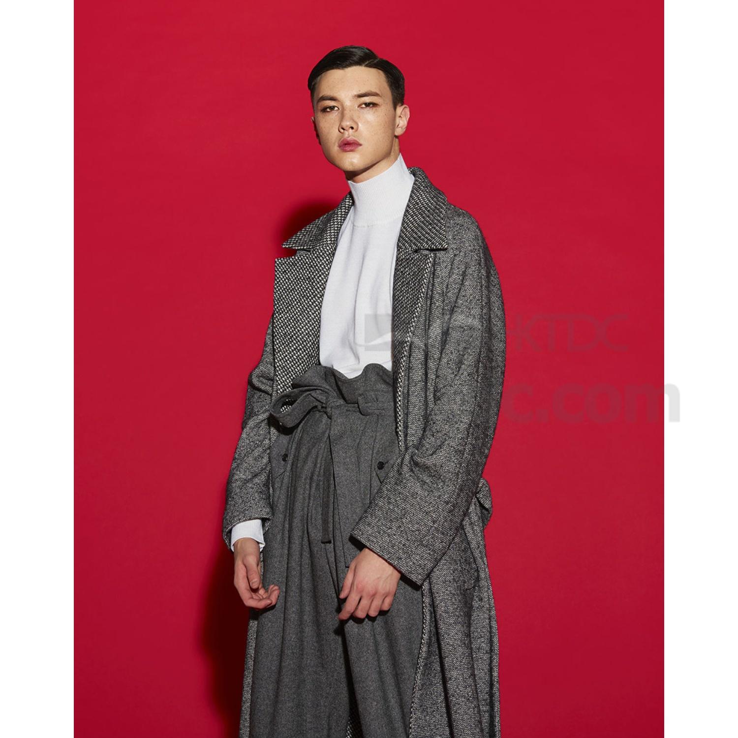 • Double Breasted Pattern Collar Long Coat (Gray)