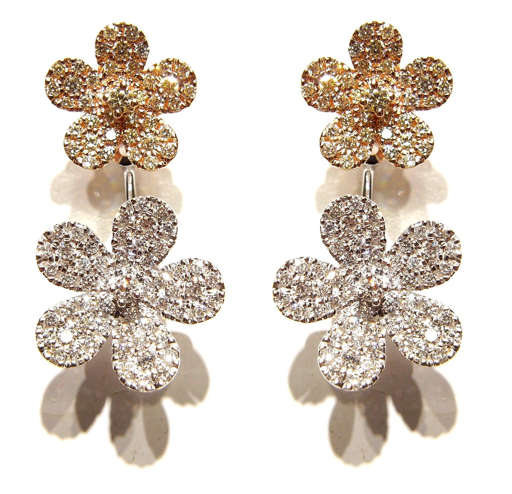 DOUBLE FLOWER DIAMOND DROP EARRINGS