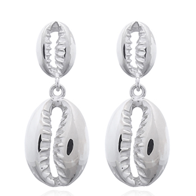 Double Hanging Cowrie Shells Silver Stud Earrings