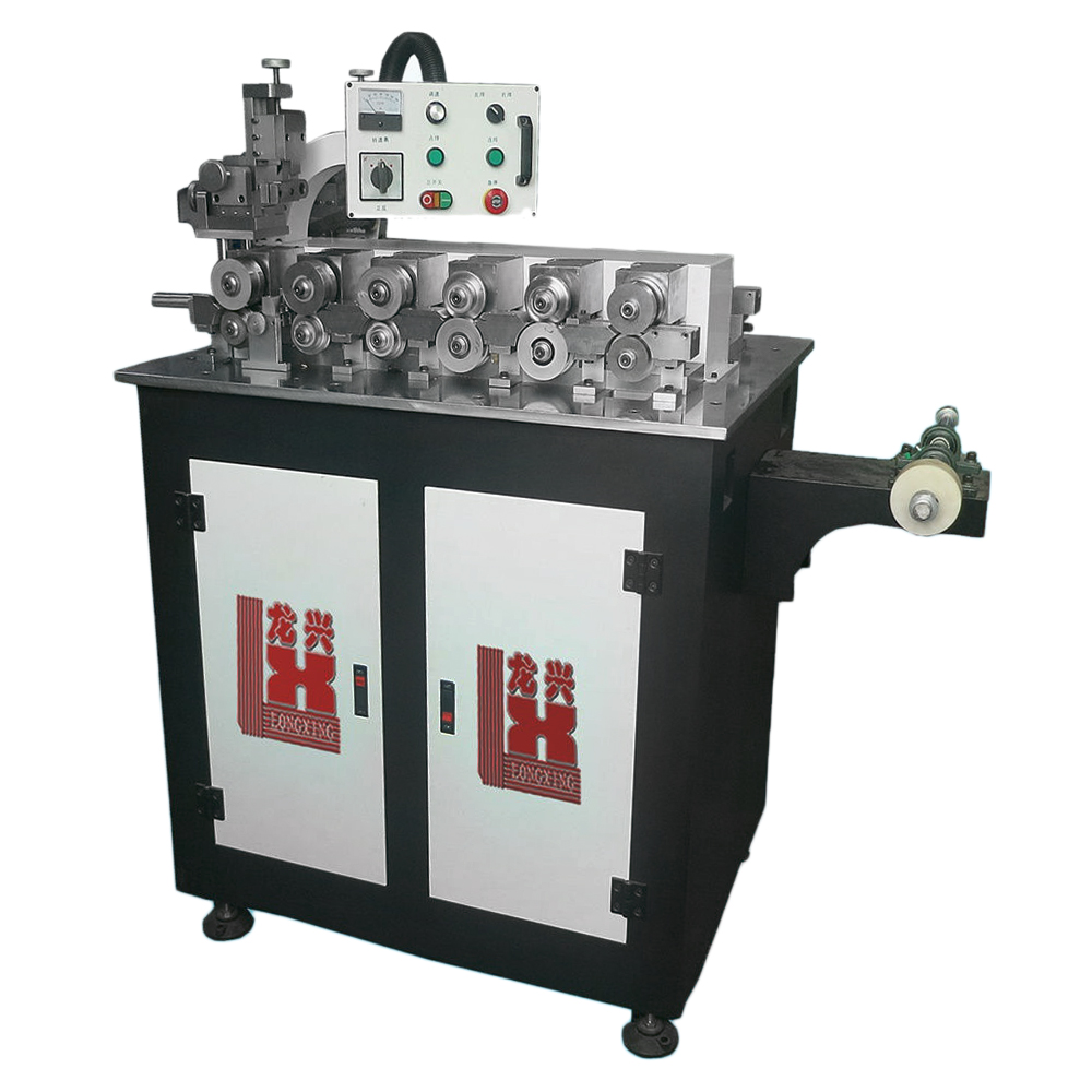 This machine roll the piece material to round and then weld. Its welding speed is 1.5m/second. It can weld 2 mm diameter round pipe as minimum, and 9 mm diameter as maximum. Two heads can weld different sizes.