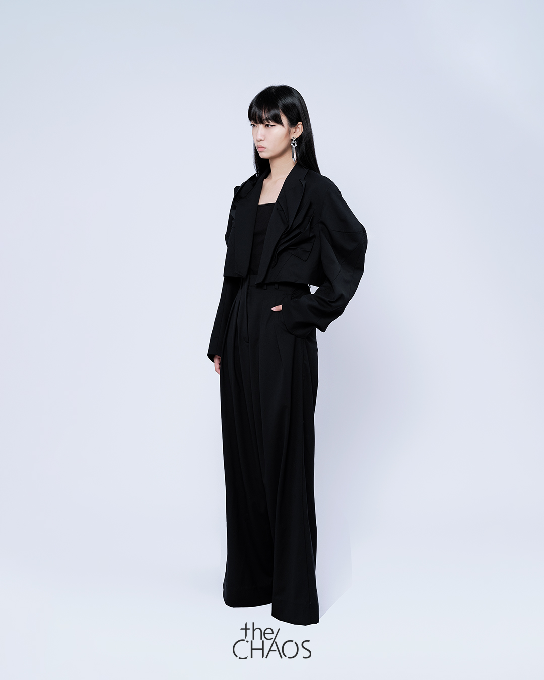 Double pleated wide leg tailored pants in dead stock tailoring fabric.