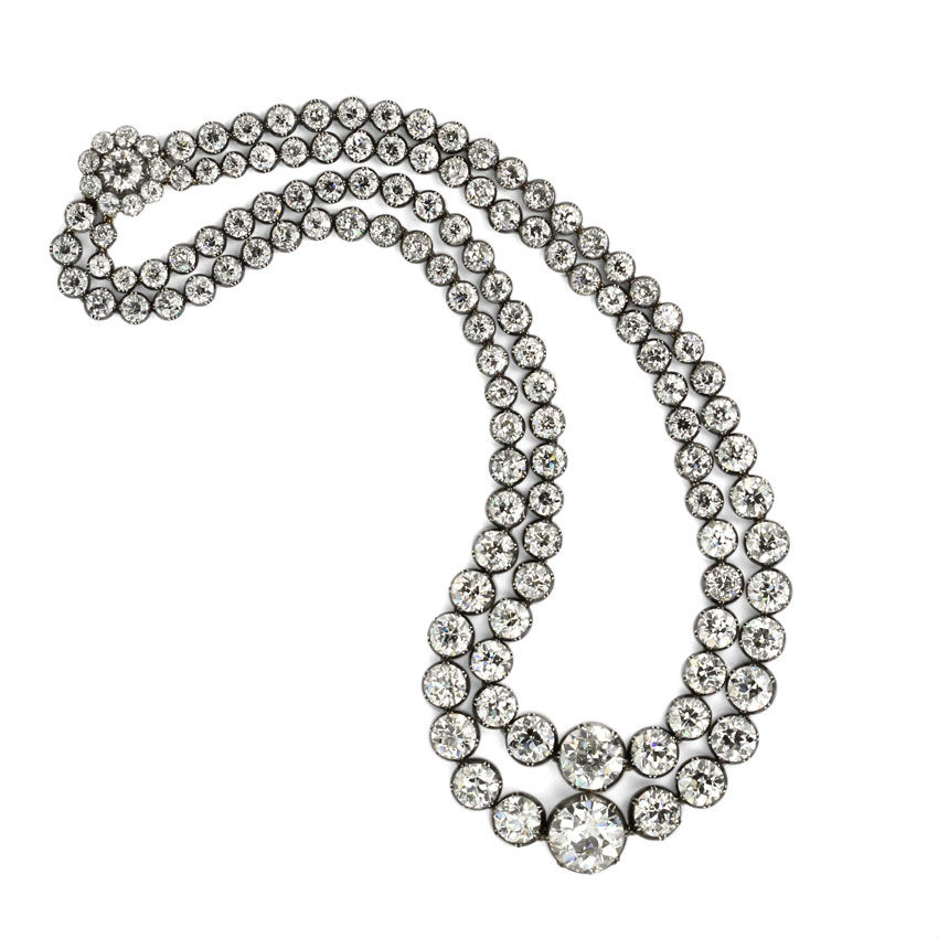 • Double-row diamond necklace with diamond clasp.