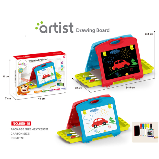 • Double-Sided Kids Easel ---This kid’s Art Easel includes two surfaces, a chalkboard on one side and  dry erase board on the other. The two surfaces to keep two or multiple kids busy. Your little artist will love creating new masterpieces on this Standing Art Easel.