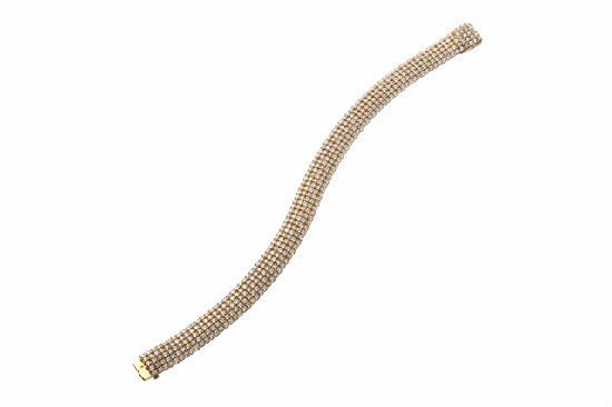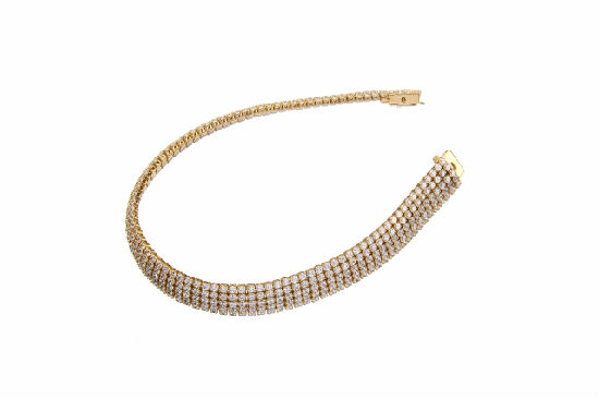 This exceptional bracelet comes with five strands of sterling silver cup chains for a sturdy and durable construction. The shimmering CZ stones that settle on the cup chains catch everyone's attention effortlessly. Glamorous and gorgeous, this double-stranded bracelet goes well with different outfits, from everyday casual to formal dressing.