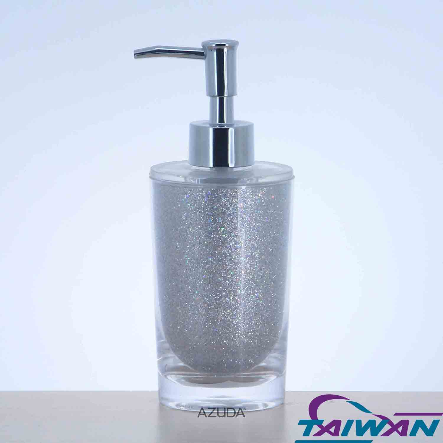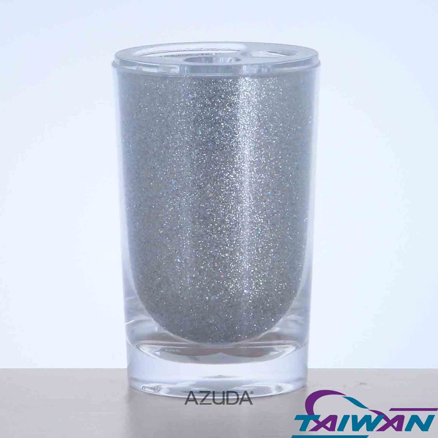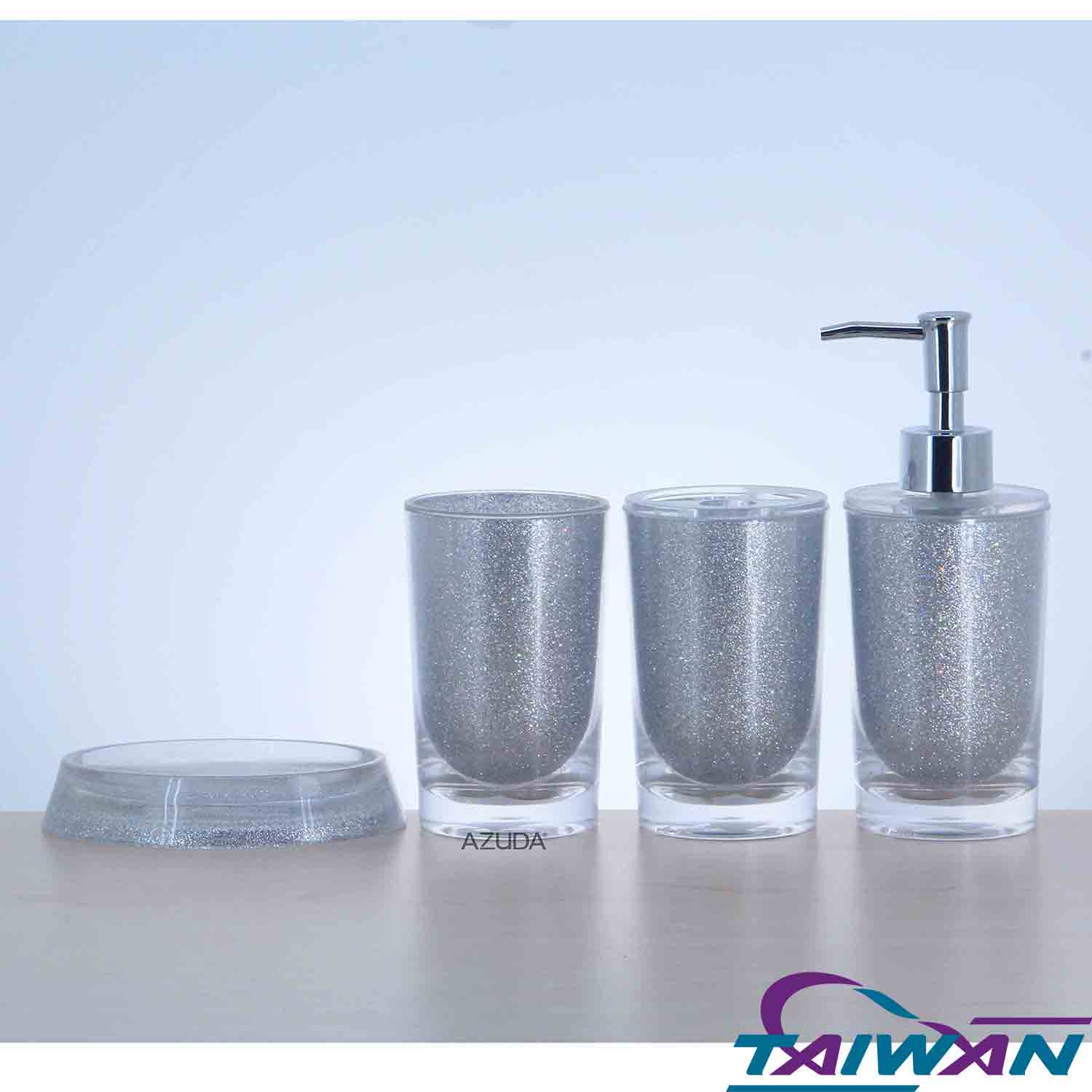 Double Wall Acrylic Bathroom Accessories Set Silver Glitter Design