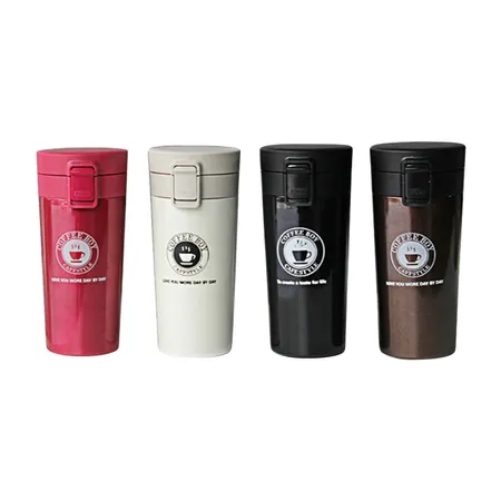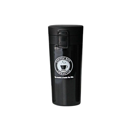 Maintain the temperature of hot and cold beverages with this double wall stainless steel mug. It offers a capacity of 380ml and has a lid with latches to prevent spills. This double wall stainless steel mug is decorated with a logo on the exterior and is excellent for promotional use.
