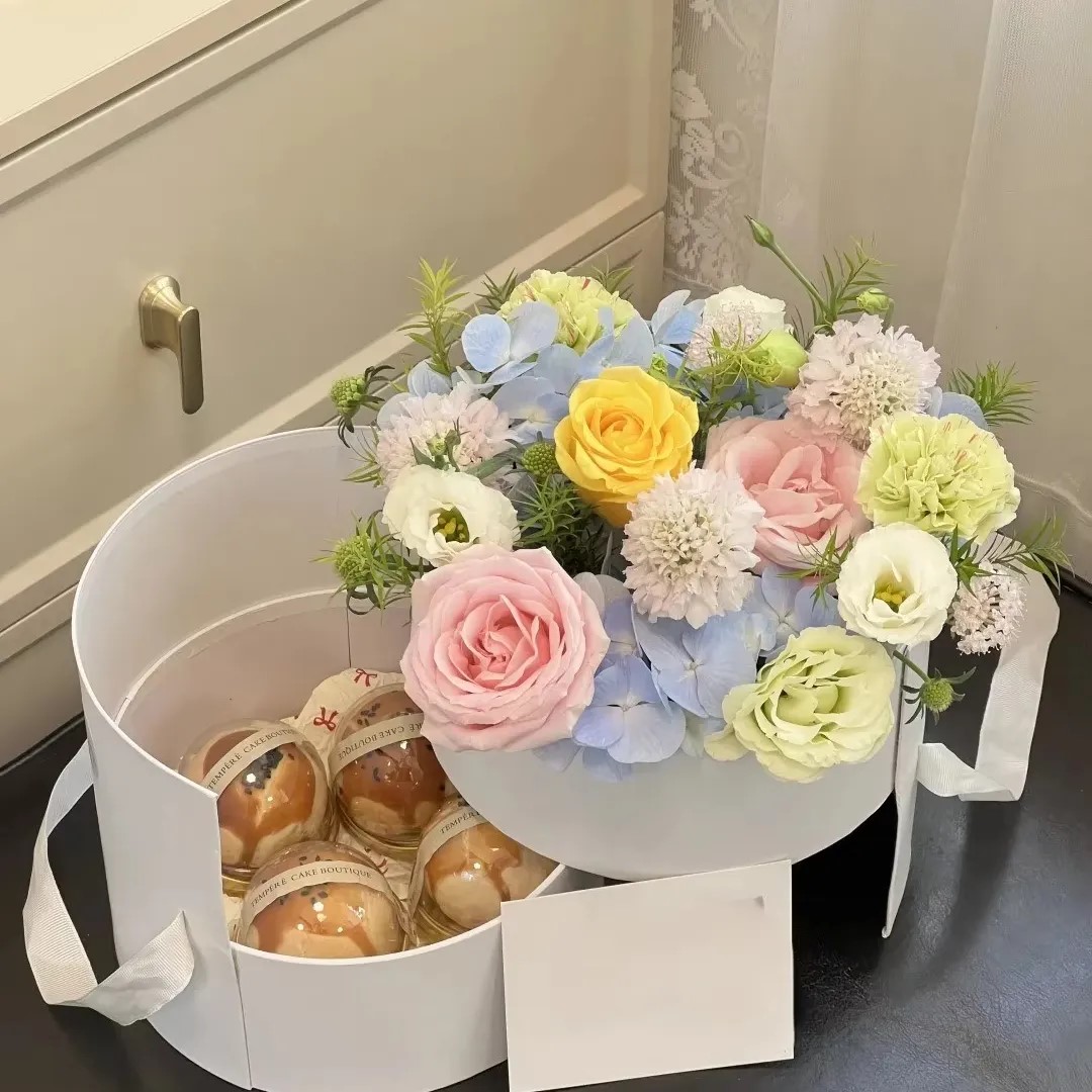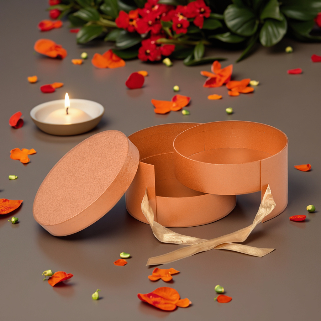 Round double-layer gift box, elegant and soft, suitable for high-end gift packaging.
