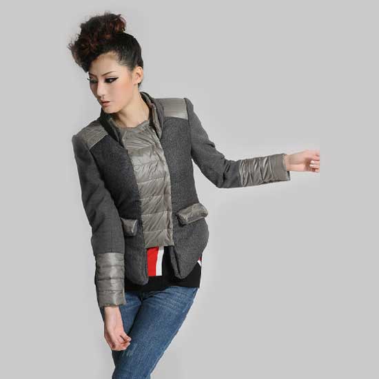 This is a down jacket with a stylish and trendy design. The 90% duck down filling makes this garment warmer and more puffed. The wool-like fabric matches perfect with the thin nylon fabric, showcasing a more fashionable look.