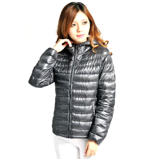 This stylish down jacket is specially designed for fashionable ladies. It is very light and easy to roll up and put in a small bag. This ladies’ down jacket features long sleeves, a zipper closure and two side pockets.