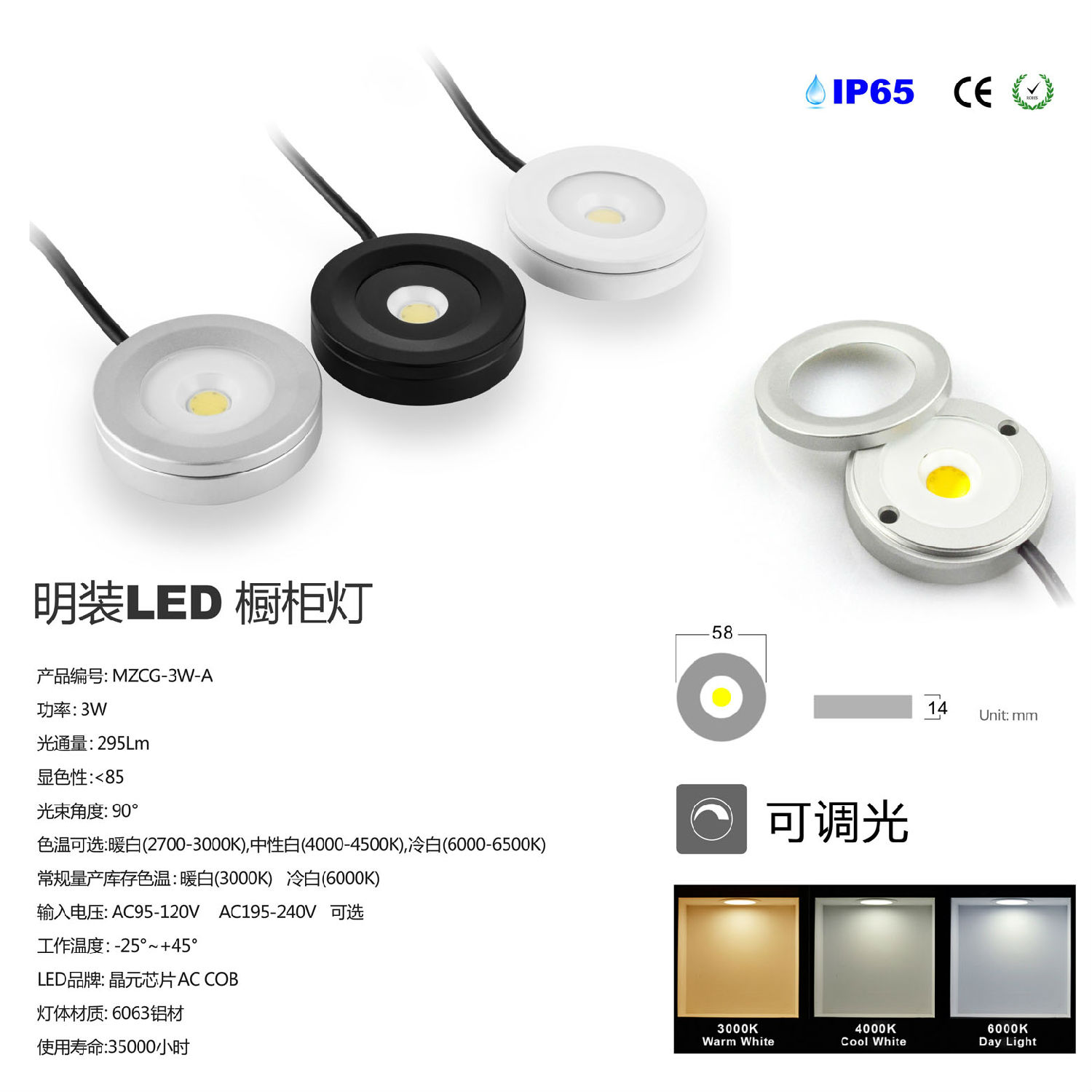 - Color temperature: 2700K-3000K/4000K-4500K/6000K-6500K.