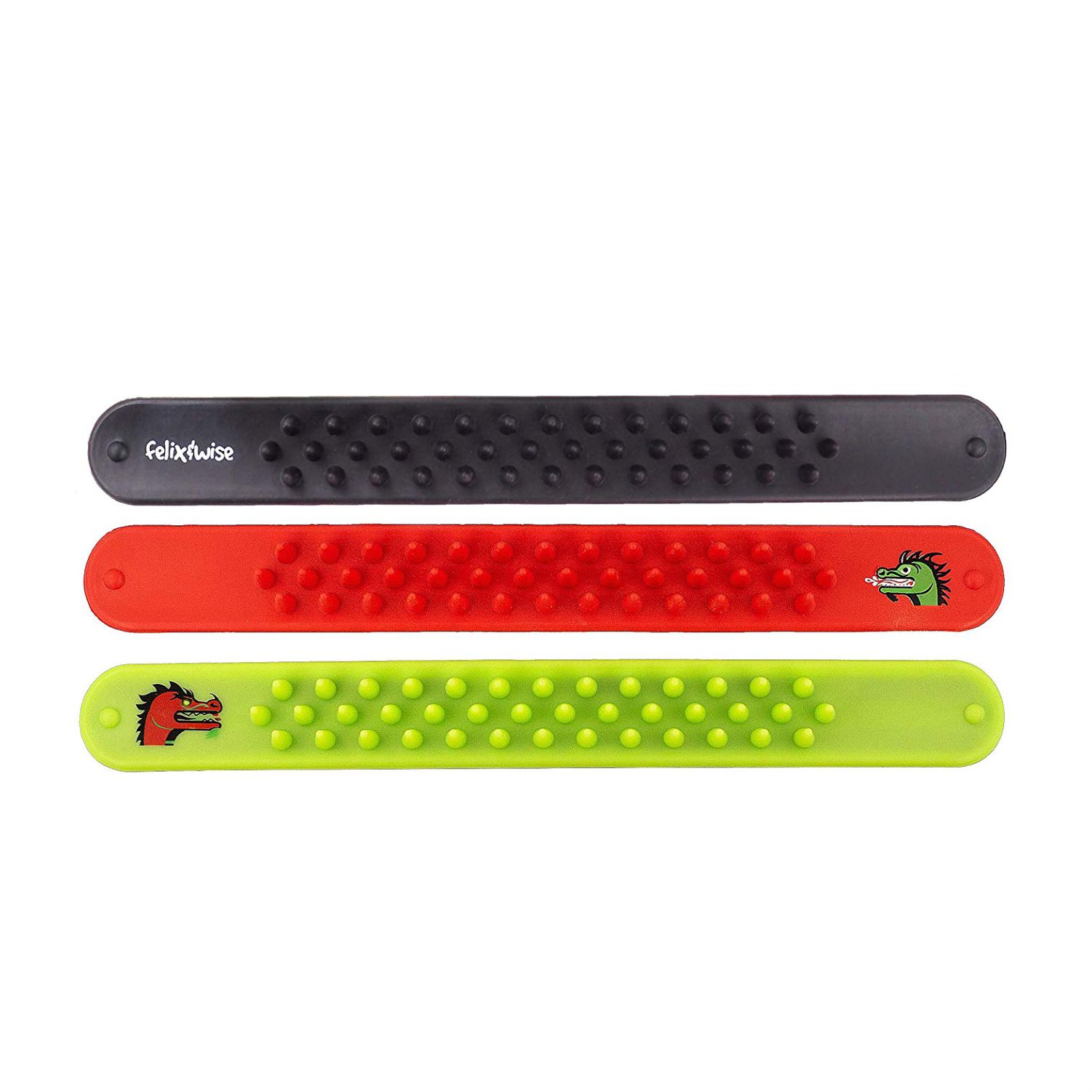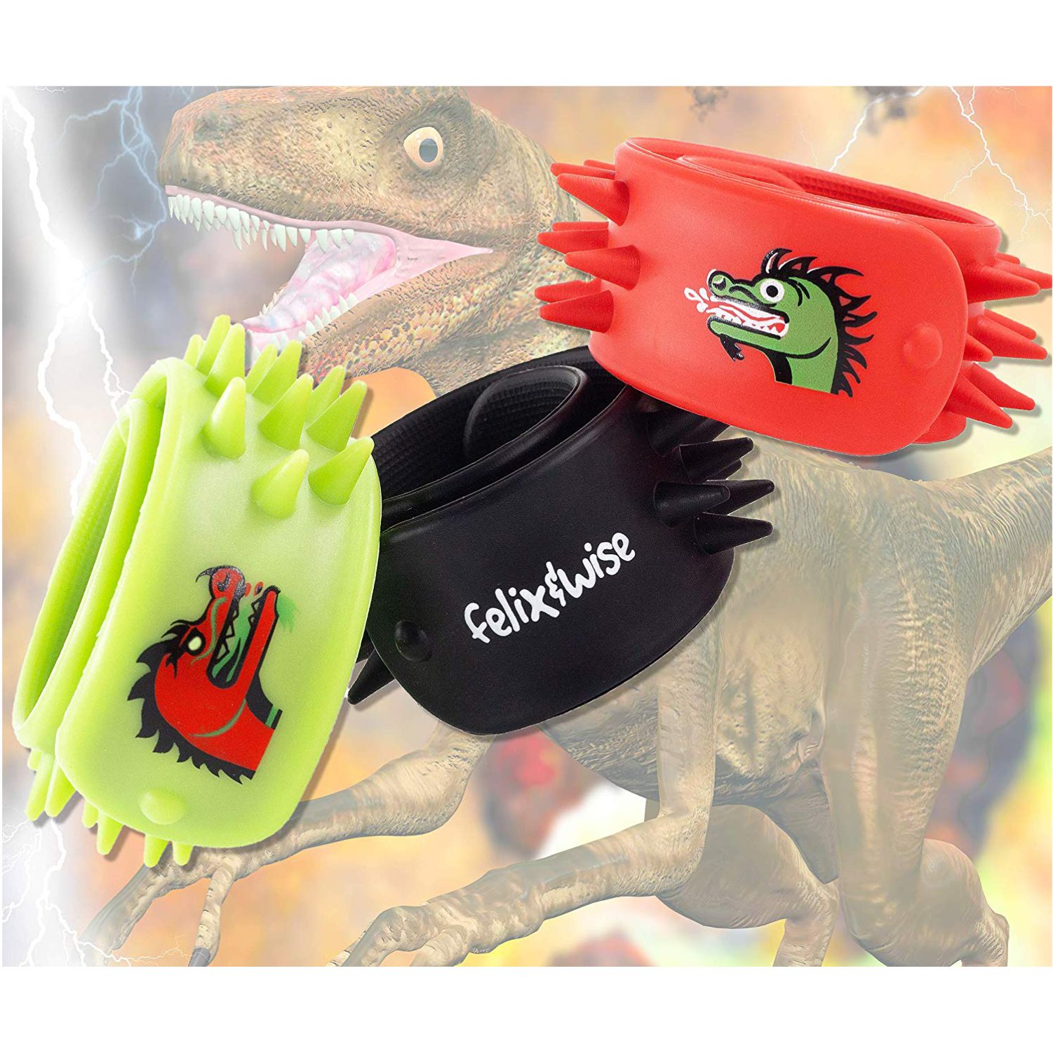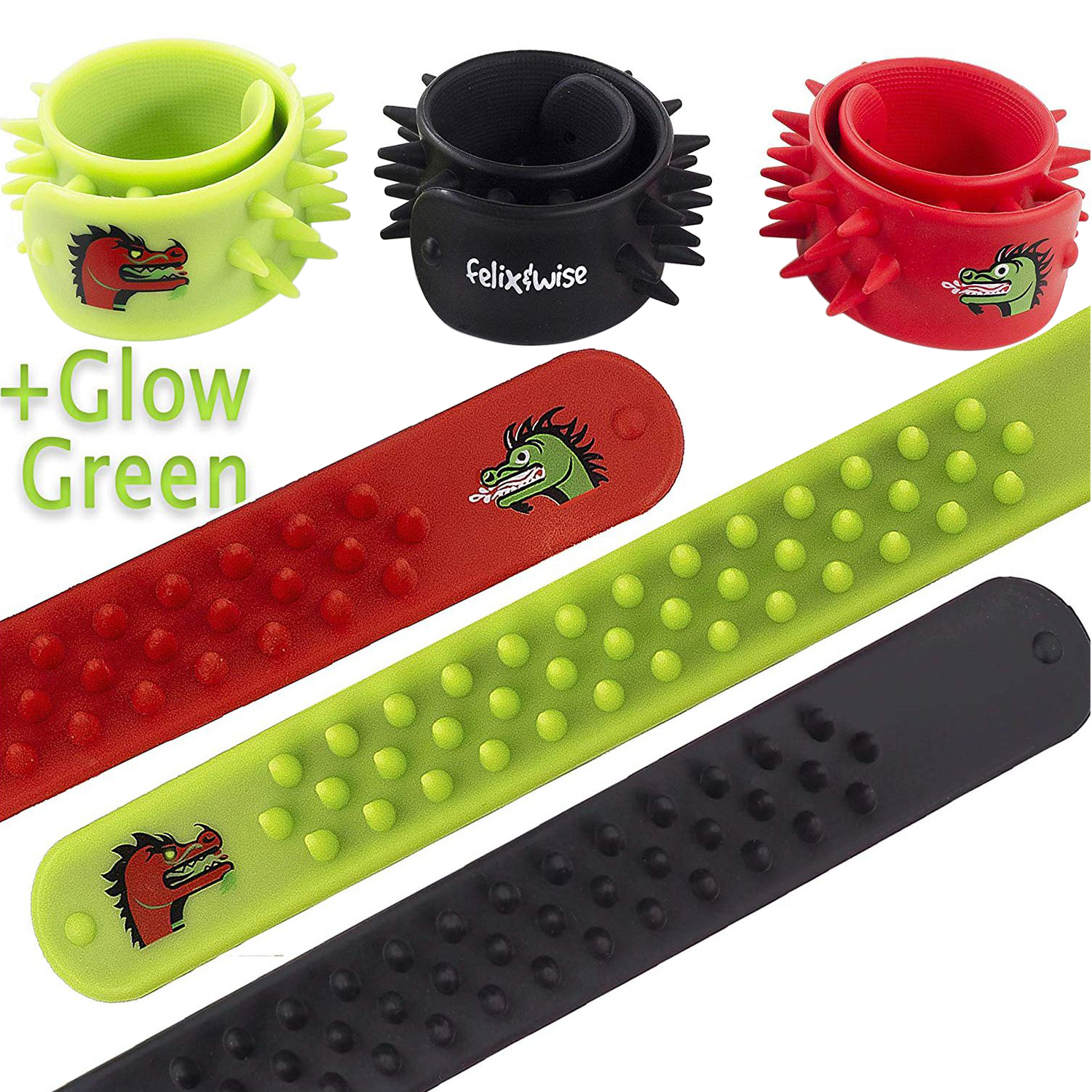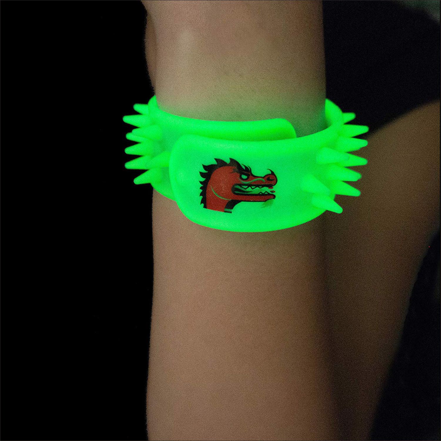 Holiday sale is on! all new updated dragon spike bracelets with glow in the dark bracelet! fidget toys For Stress-relief, Novelty, Theme Parties or Roaring Fun. Very Tactile! 3 Silicone Slap Bracelets in a Set - red, green and black - Fiery Red and Roaring Green Dragons! Have Fun with Dragon and Dinosaur Power. Share with Your Friends!
