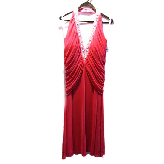 This halter neck evening dress catches attention with a deep V-neckline adorned with sparkling stones. The delicate drape on the two sides look elegant and classy. This fabulous cocktail dress is a hip, sexy and charming choice for you.
