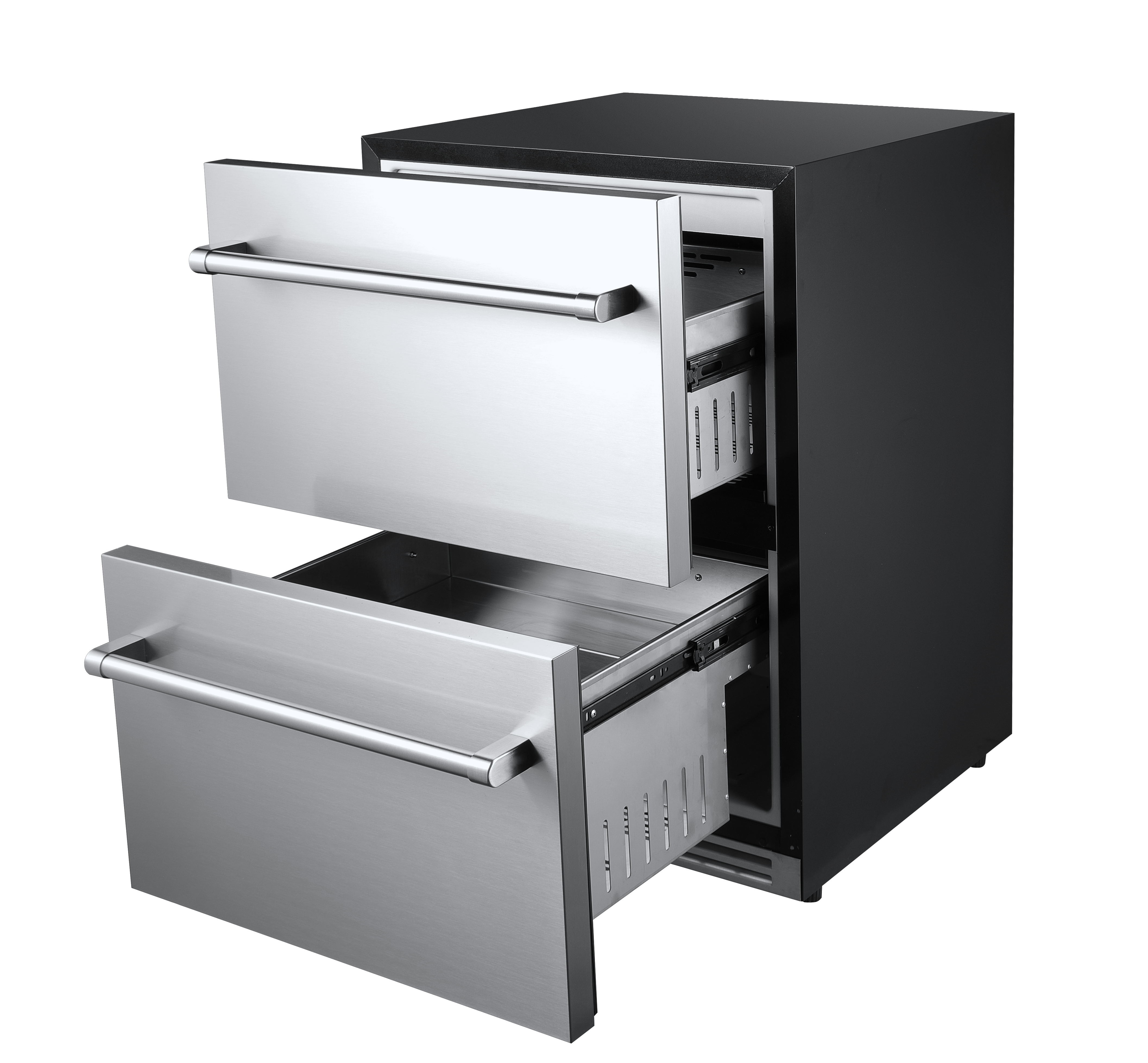 BC145 is a drawer refrigerator can do both indoor or outdoor use, it is come with IPX4, it can do both built in or freestanding.