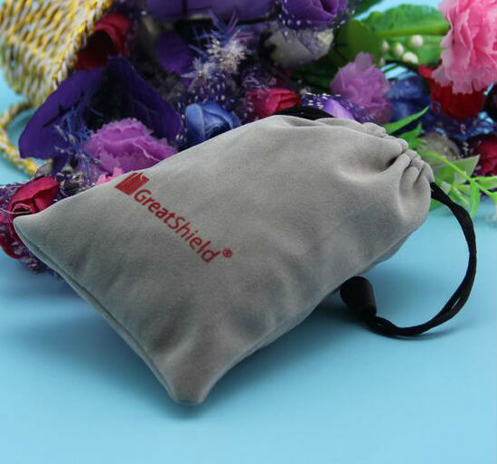 1.Material: 1C velvet material+ silk printing logo+drawstring