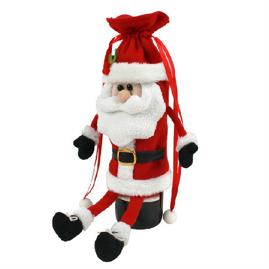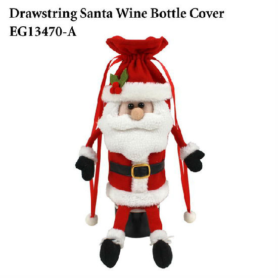 This wine bottle cover comes with Santa Claus design, is especially designed for Christmas. The wine bottle cover is secured with a drawstring closure which attached at the Santa hat. It is sure that this funny decoration can make the atmosphere more festive on Christmas.