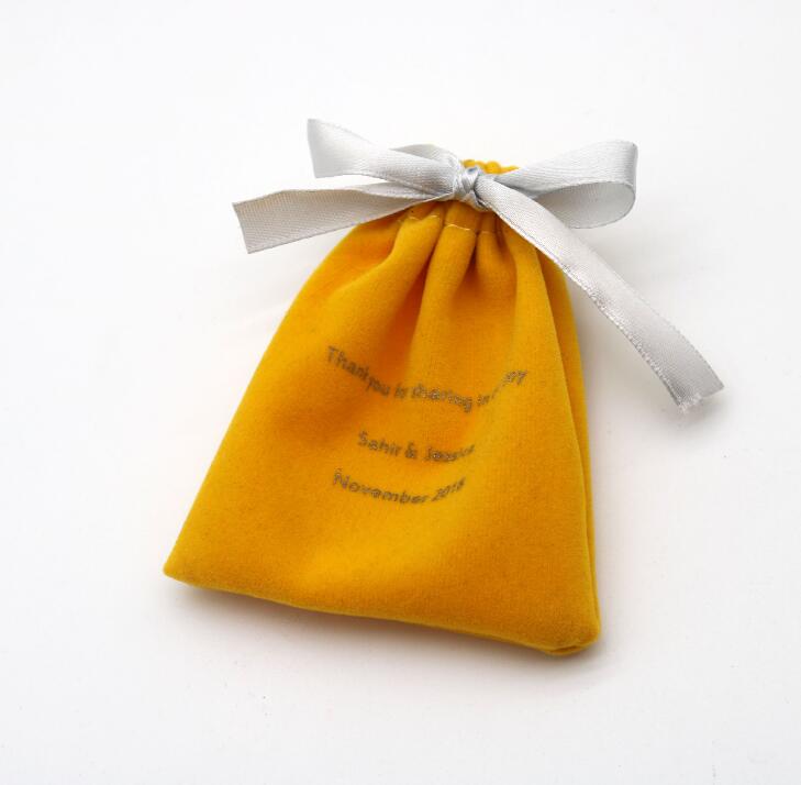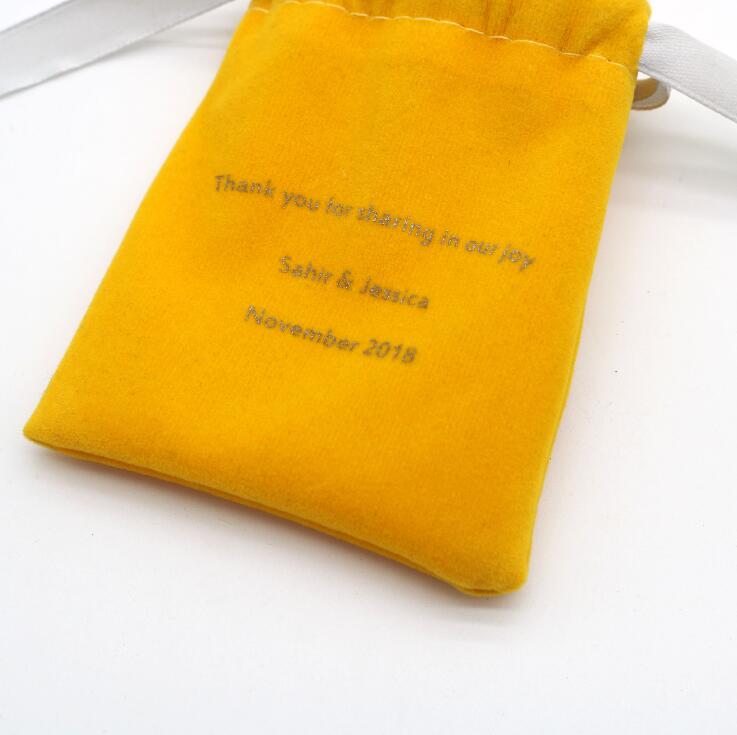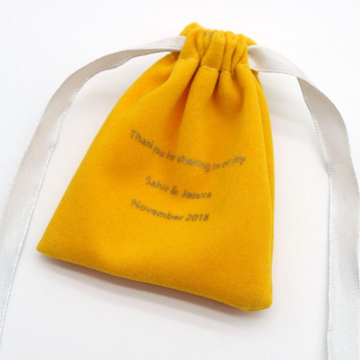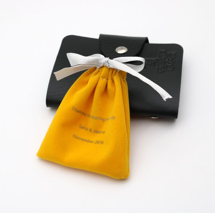 1. Material: 1C velvet material + silk printing logo + drawstring