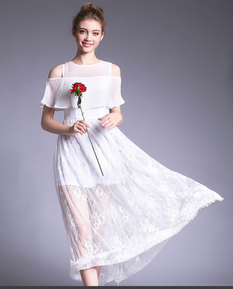 This becautiful lace dress comes with Chiffon and off-shoulder design for a stylish touch. It is made of quality materials for maximum comfort. This trendy dress is a great choice for fashionable ladies.