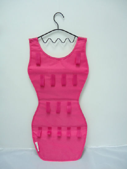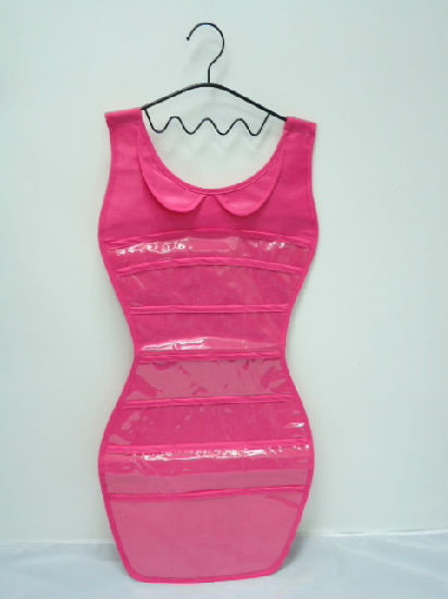 • Dress shape polyester with clear PVC hanging jewelry organizer.