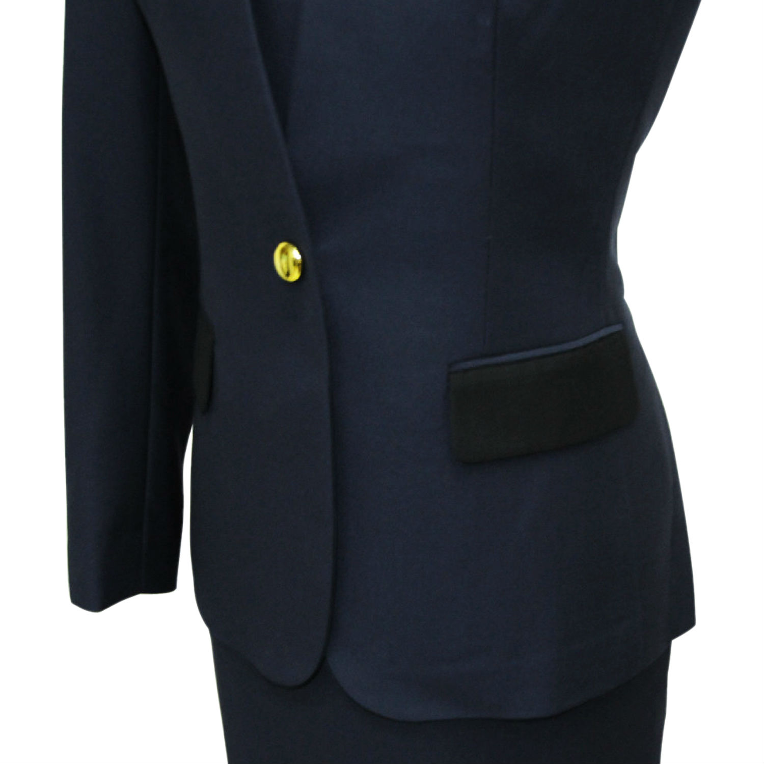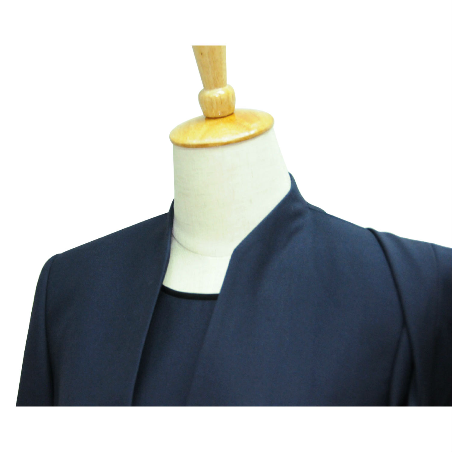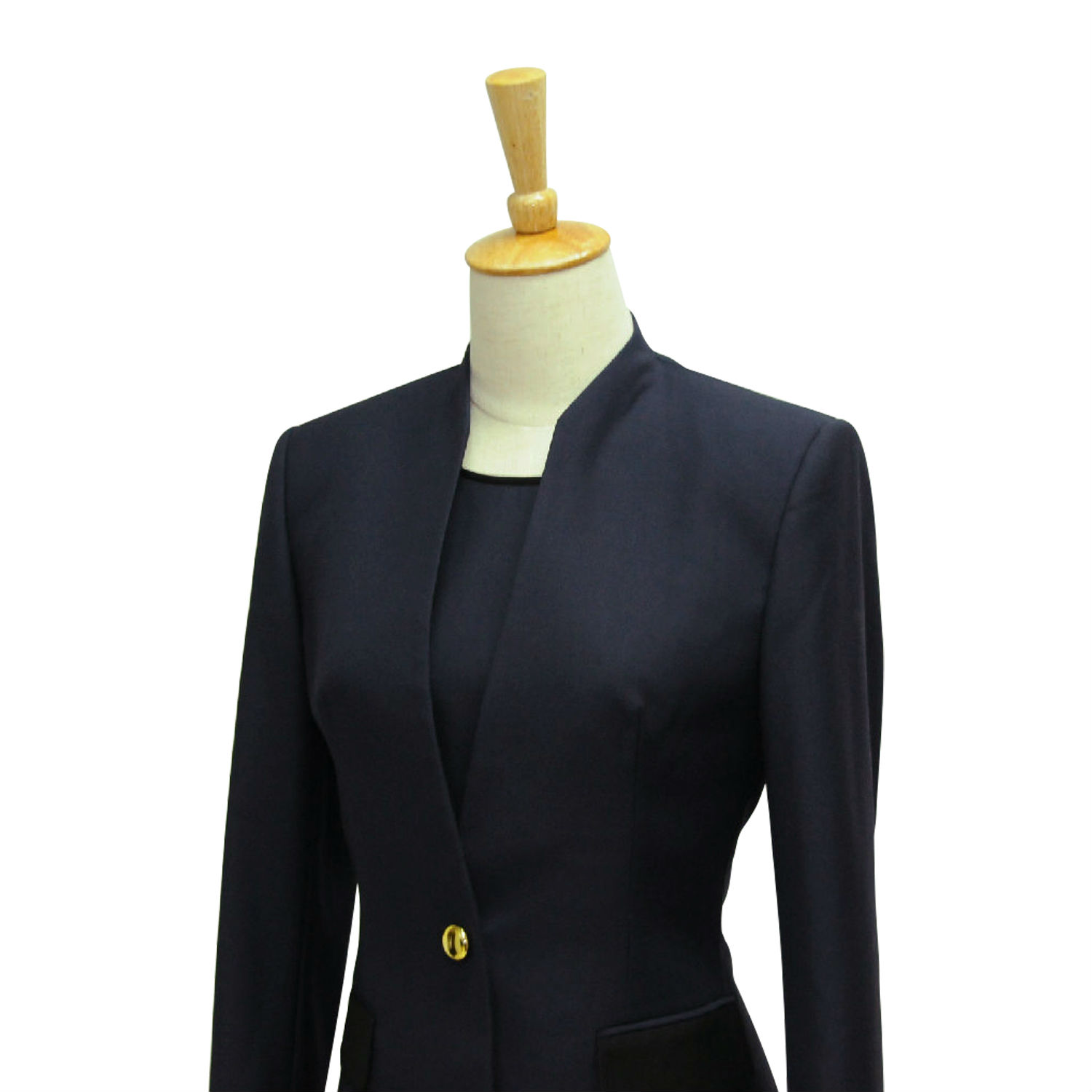 This two-piece dress suit showcases a sheath dress and a matching jacket with round necklines. The sheath dress creates a slim silhouette while the single-breasted jacket ties the look together. This dress suit is beautifully crafted to make you look great and professional.