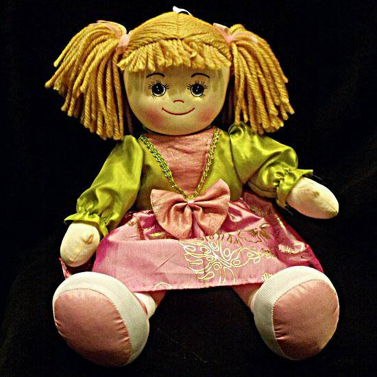 This smiling and lovable dress-up doll is wearing a retro and beautiful dress. This dress-up doll teaches basic dressing skills and helps encourage hand-eye coordination. The doll is softly stuffed for children to cuddle.