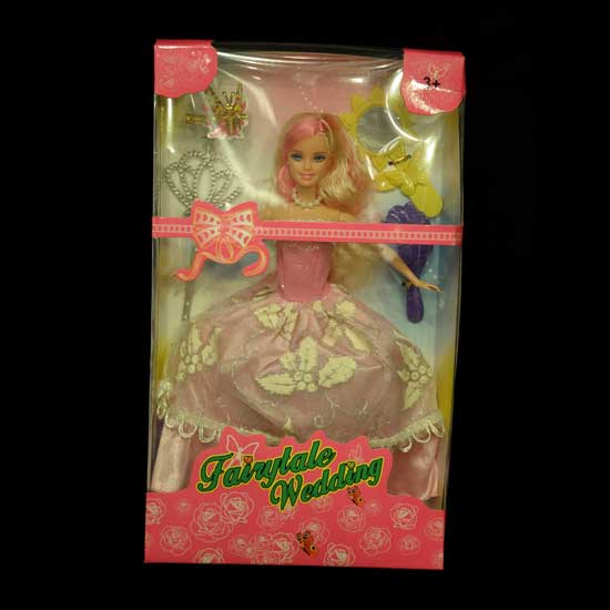 This is a dress-up doll with fancy accessories, including a magic wand, mirror and butterfly. This set is made of quality plastic for enhanced safety. This dress-up doll is a beautiful and attractive collectible figure for young girls.