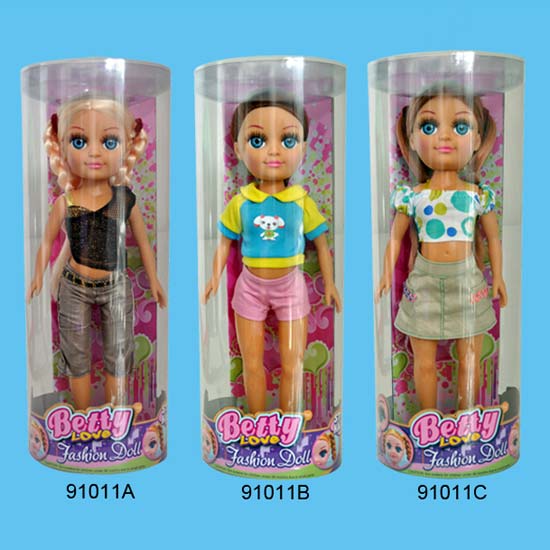 Showcased is a collection of dressed dolls with fashionable designs. They are packaged in cylindrical cases for added class and style. Add these fabulous ones to your doll collection.