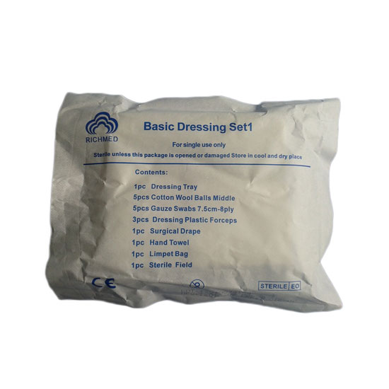 This is a basic dressing set with a dressing hard tray, five gauze swabs, three plastic forceps and so on. It is manufactured under strict QC to promise quality you can rely on. This reliable dressing set is a great choice for medical use.