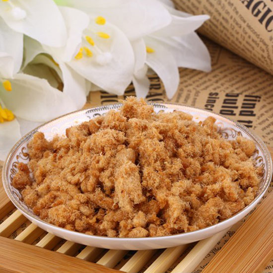 This is a dish of dried meat floss with a golden appearance. It boasts a tasty and delicious flavor and is a great choice for making assorted foods. The dried meat floss is made from fresh meat and high-quality seasoning.