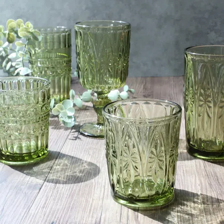 This crisp-and-clear drinking glass features an exquisite, embossed design in a charming greenish hue. Available in a variety of retro-inspired motifs, this drinking glass is perfect for serving everything from fresh lemonade and smoothies to iced tea, cocktails, beer, whiskey, and more.