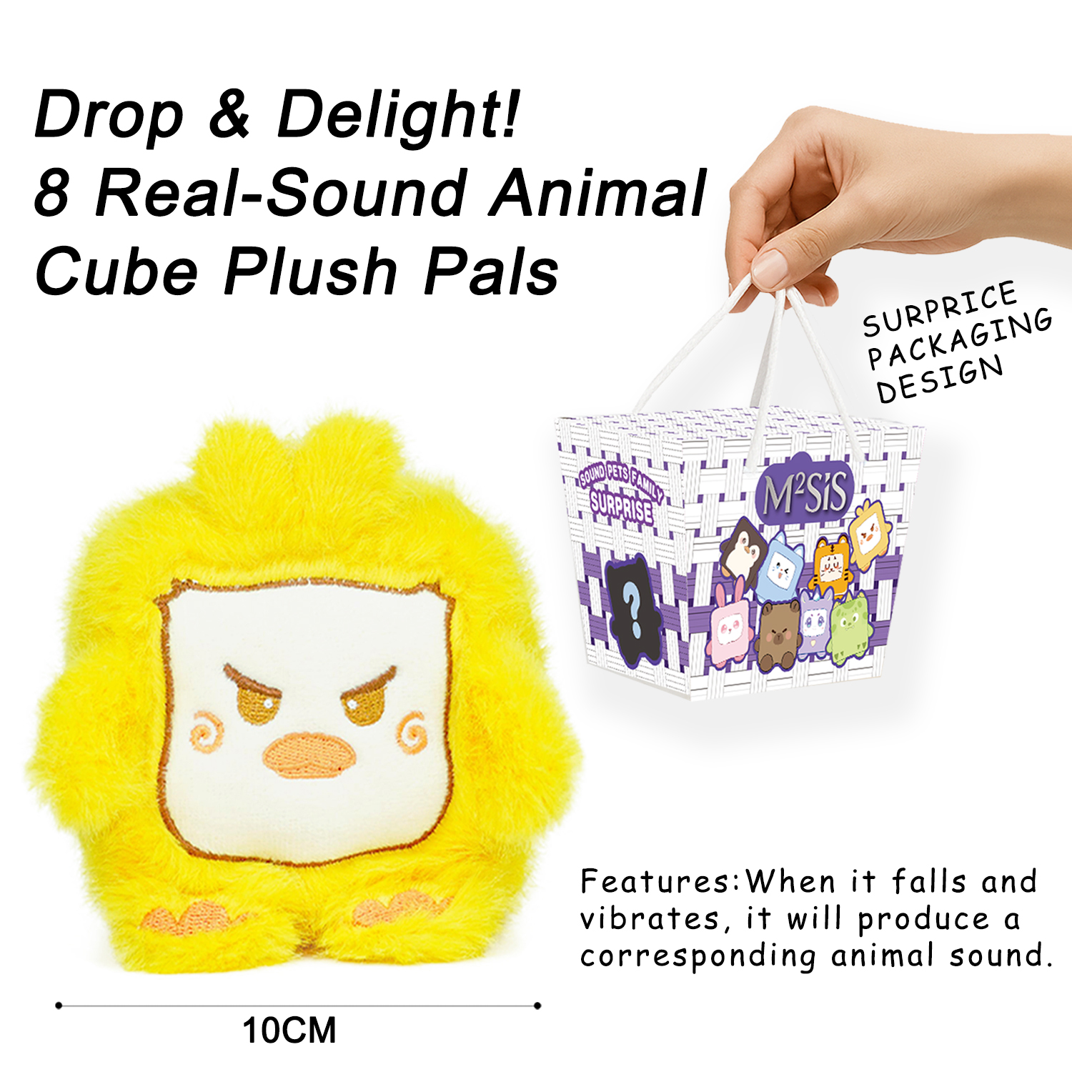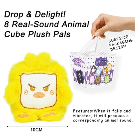 Suprise basket box packing — With a soft squeeze, it plays the real animal sound to bring smiles, giggles, and endless sensory fun. Features:Soft & fluffy faux fur. Compact cube shape – perfect for little hands. Real animal sound with every drop. Ideal for sensory development & imaginative play.