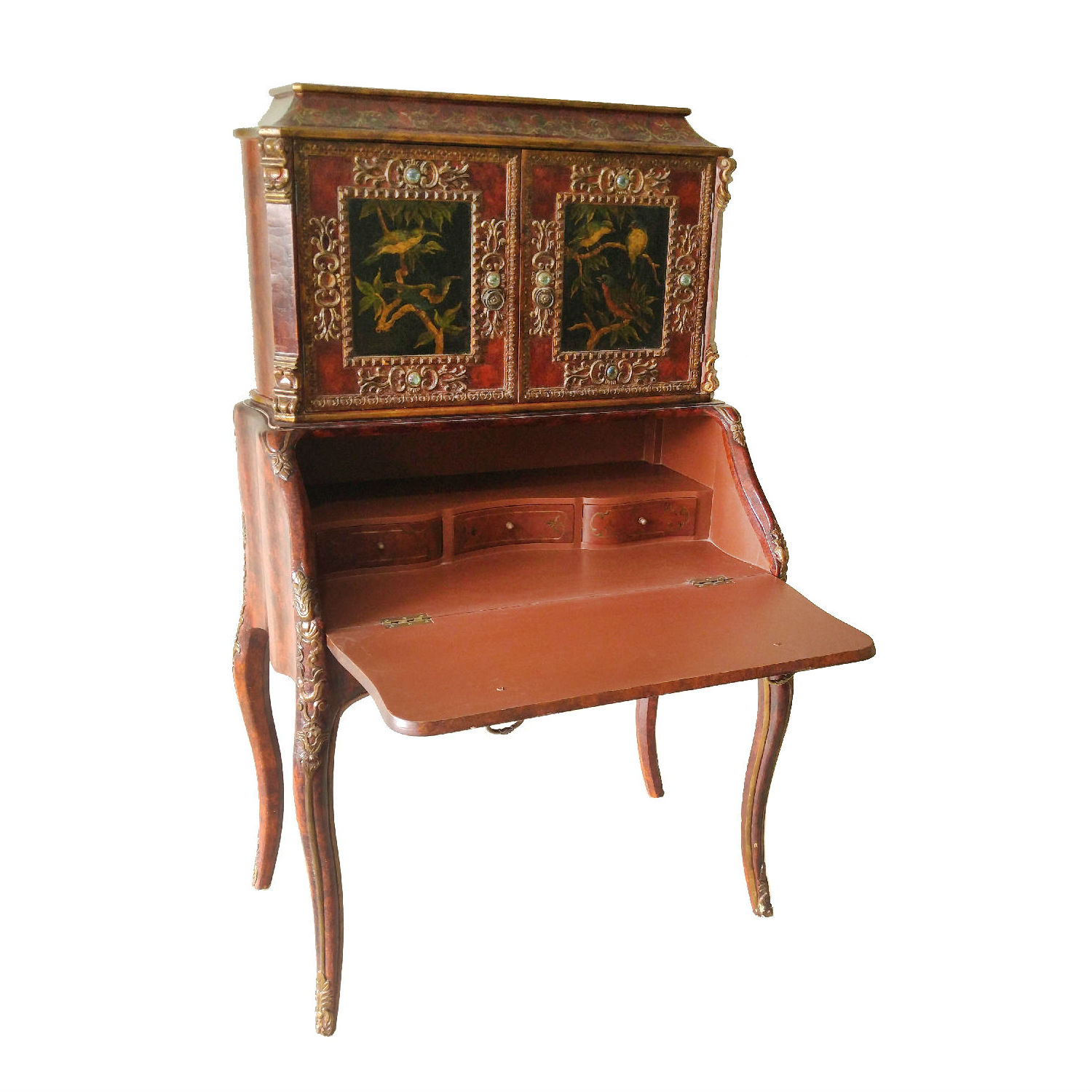 This secretary desk is crafted with a top cabinet for ample storage and a drop-down desk for a flat writing surface. The four meticulously crafted legs provide a strong stable support on the floor. This drop down secretary desk offers an ideal work corner for a small living space.