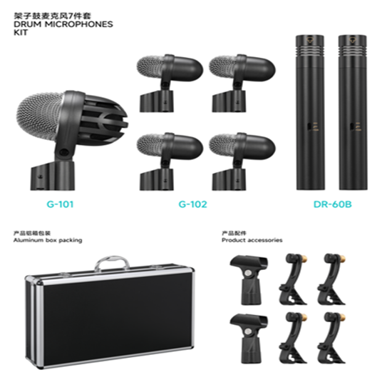 • SNARE DRUM MICROPHONES with cardioid pattern and sensitivity of -58dB±-5dB