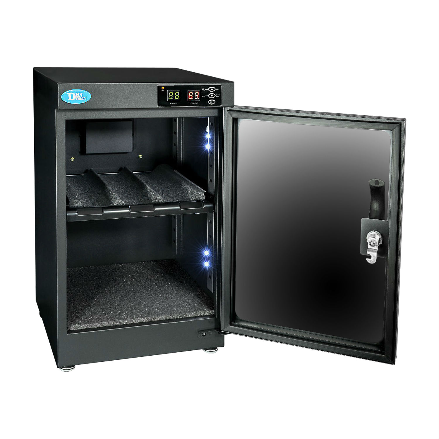 Skillfully crafted with a long service span, this dry cabinet fetches a rectangular box-like contour with a front transparent door. The double-deck interior also offers a dry environment for storing your cameras, lenses and leather-made products.