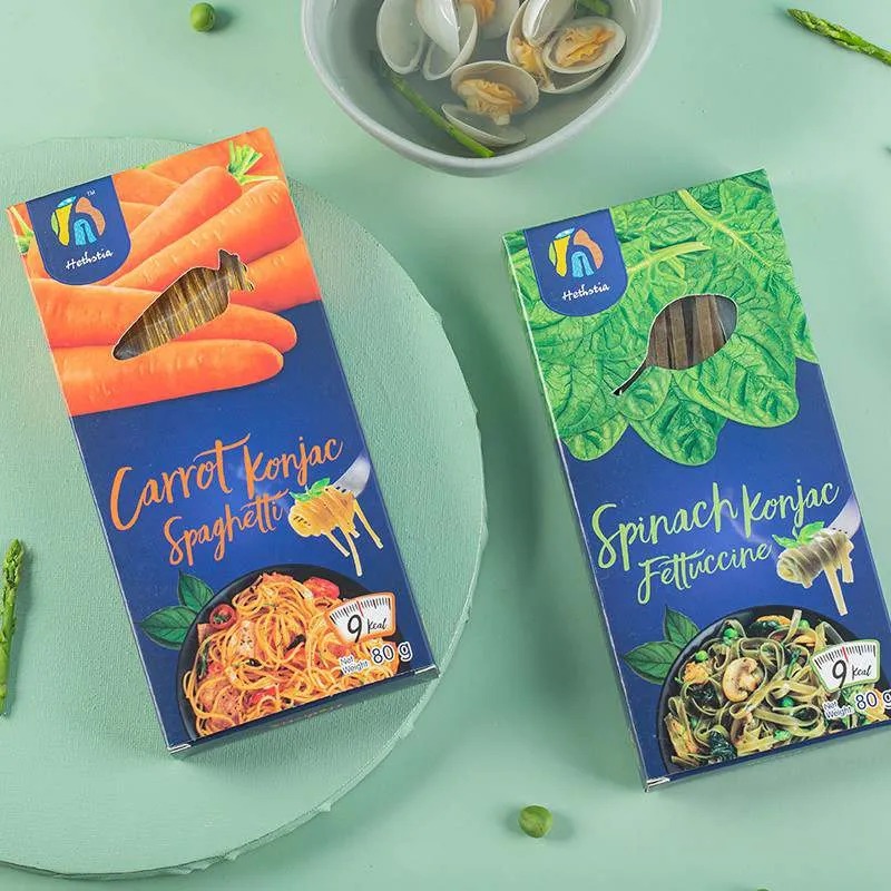 Spinach shirataki noodles fettuccine is rich in high-quality water-soluble dietary fiber, vitamins, and minerals, and is made from konjac flour, spinach flour, and water. It has become the choice of more and more healthy people due to its low calories, low carbohydrates, 0 fat, 0 sugar, and other advantages.
