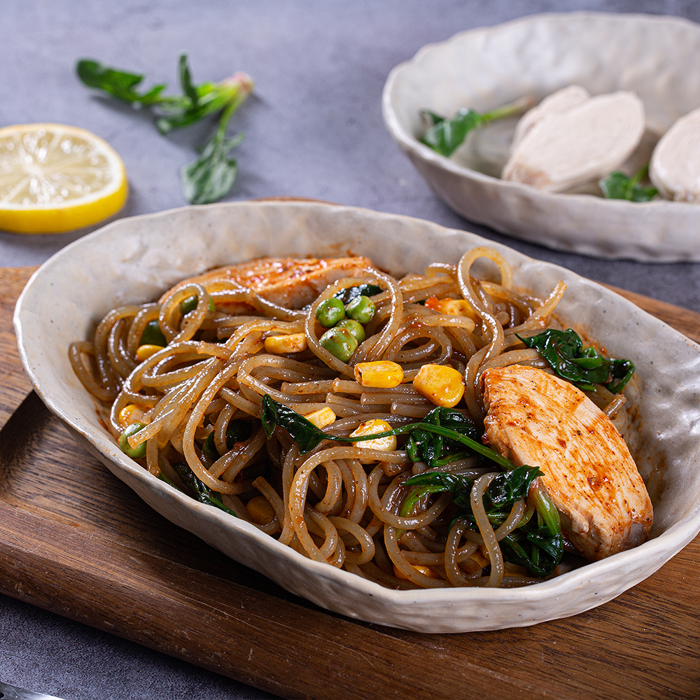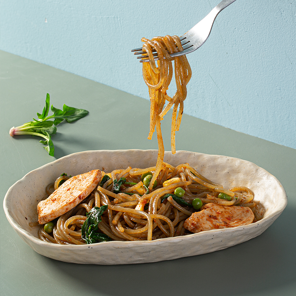 Low-calorie, gluten-free spinach shirataki noodles spaghetti with added spinach, which adds flavor, firmness, and a unique color. One serving of Shirataki noodles has only 25 kcal.