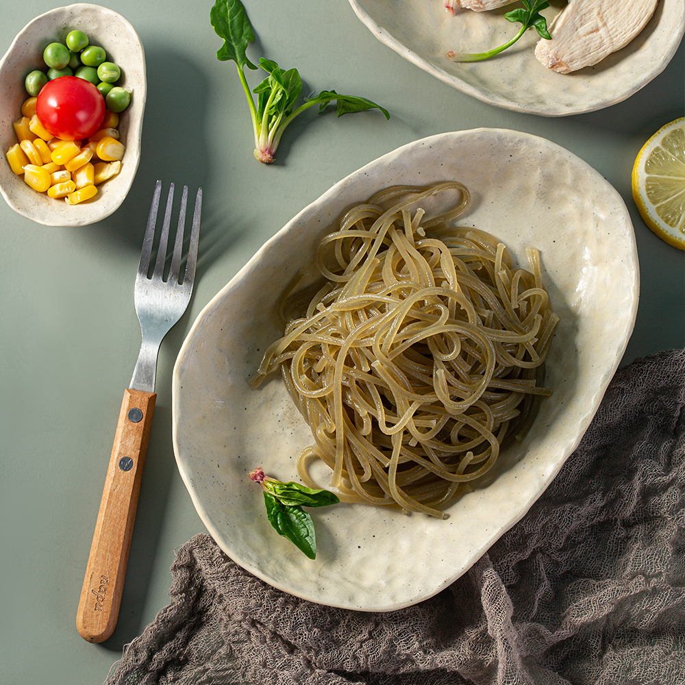 Spinach Shirataki Noodles are rich in soluble glucomannan fiber. Replacing one meal a day with shirataki noodles can significantly increase daily fiber intake and play an important role in reducing daily calorie intake.