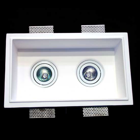 This downlight comes with dual lamp heads in a rectangular casing.