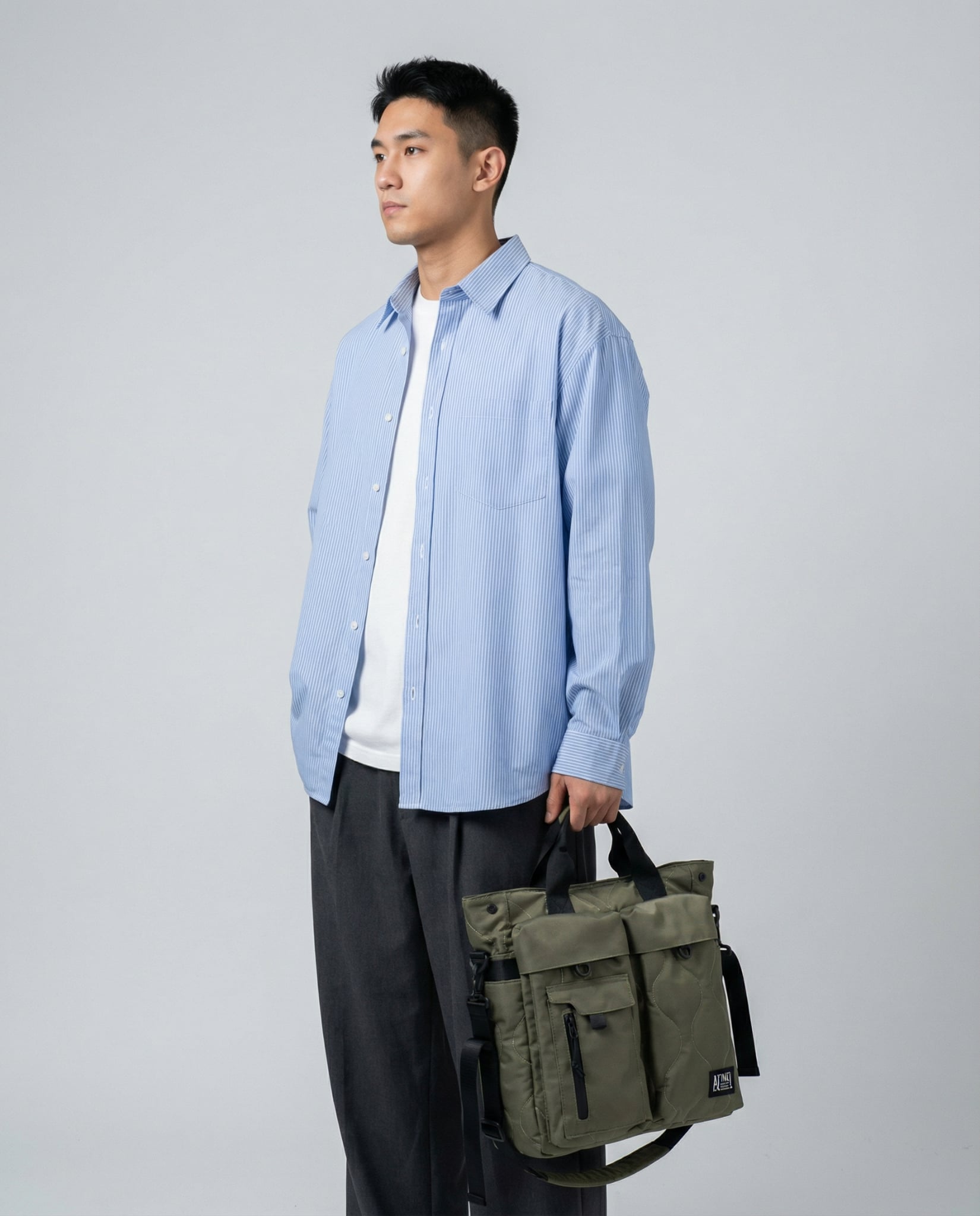 一款大容量、高實用性的全能手提袋,專為追求極致收納空間且不願犧牲風格的人士設計。擁有標誌性的雙前置立體大袋,L 尺寸採用重型機能布料打造,是工作、健身或短期旅行的理想選擇。