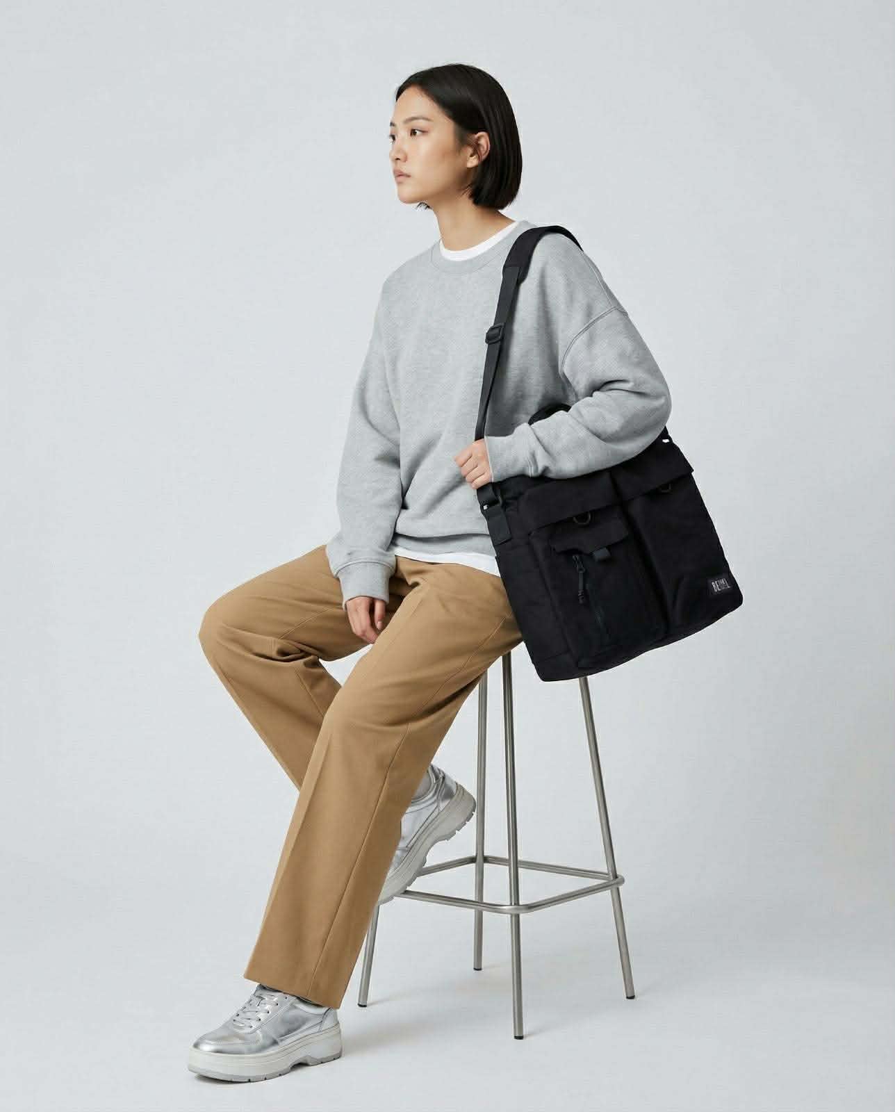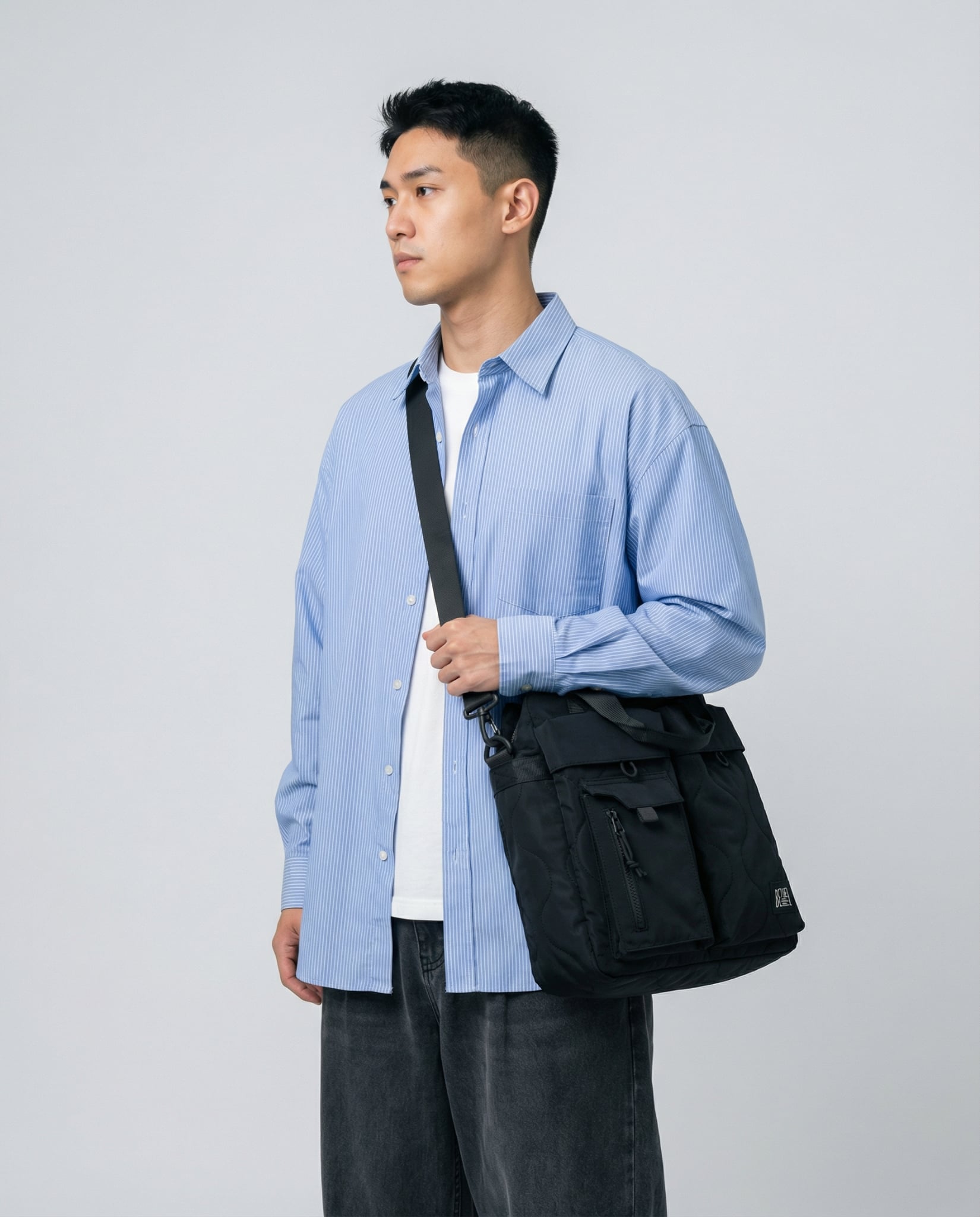 An oversized, high-utility carryall designed for those who require maximum storage without compromising on style. Featuring two signature expanded front pockets, this "L Size" bag is built with heavy-duty tech fabric, making it ideal for work, gym, or short-distance travel.