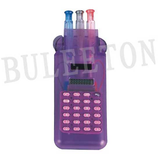 This desk calculator is equipped with an eight-digit display for most calculation needs. The dual-power design reduces the reliance on battery power. This calculator also features a pen compartment for added function.