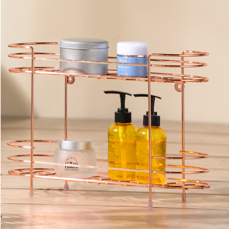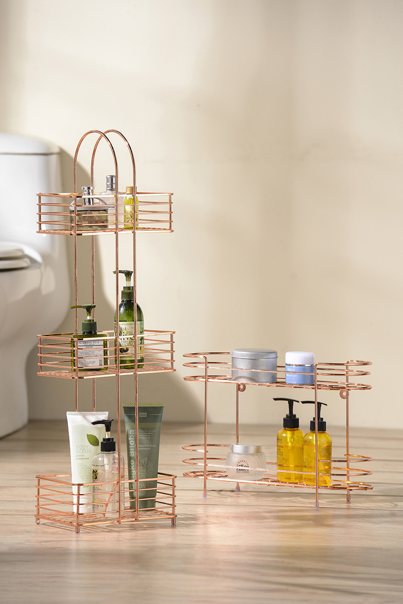 Dual Tier Rose Gold Metal Wire Houseware Bathroom Rack