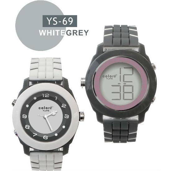 • Dual time Plastic Ana-Digit watch - White/Grey color combination
