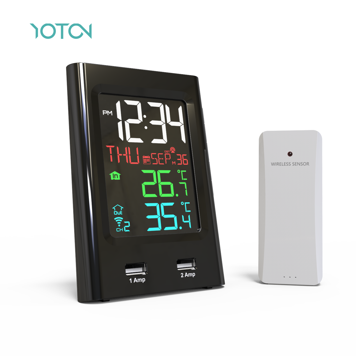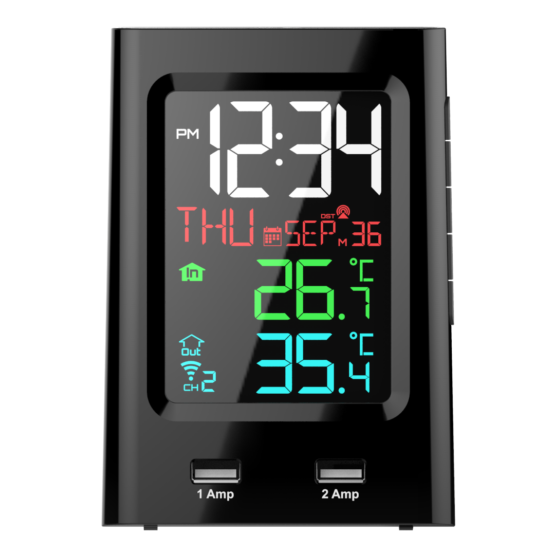 Dual USB Charging Indoor/Outdoor Clock Thermometer and Hygrometer for Living Room Kitchen Office Bedroom Smart Table Clock