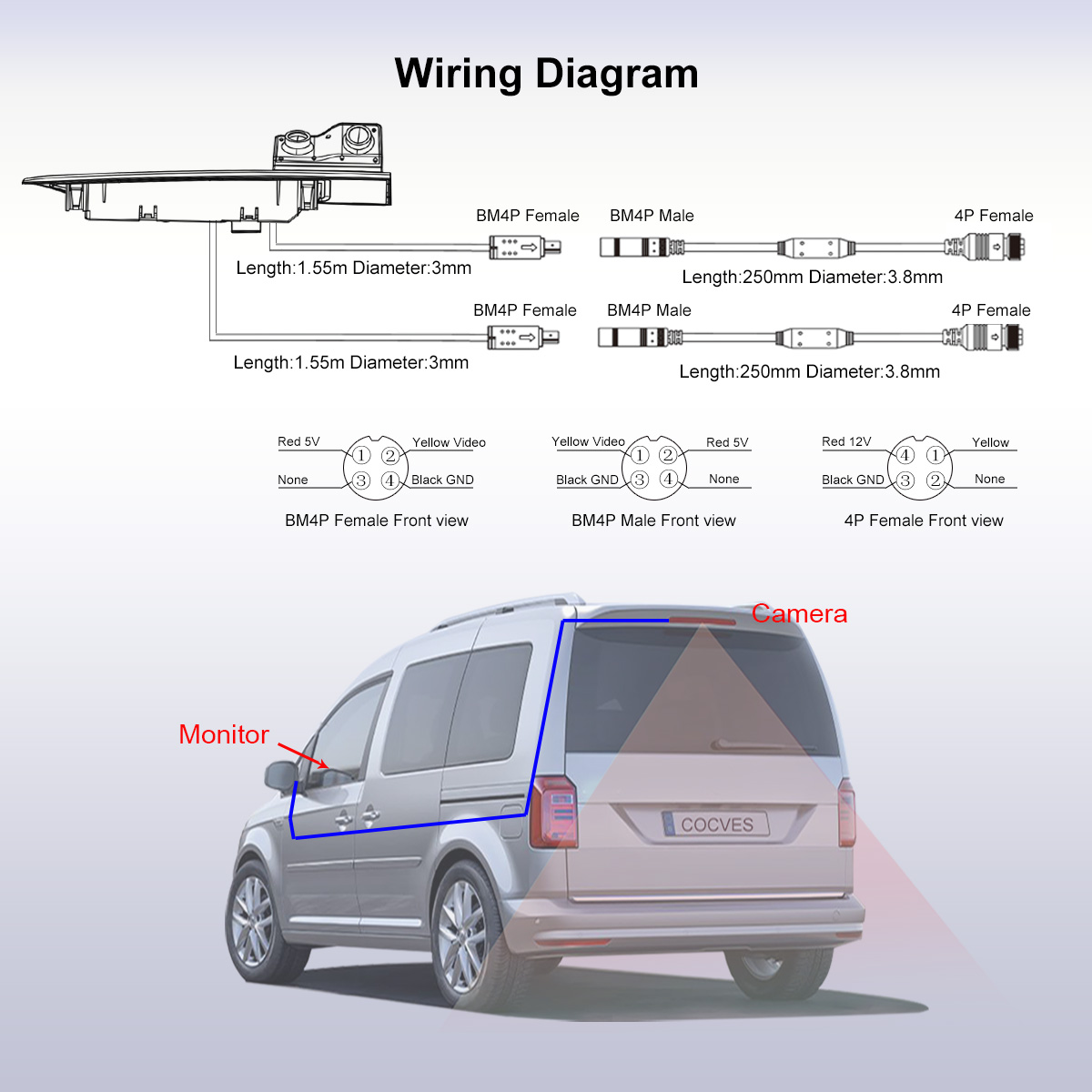 reversing view 178 degree(137 degree(H)) and back view 95 degree(70 degree(H))