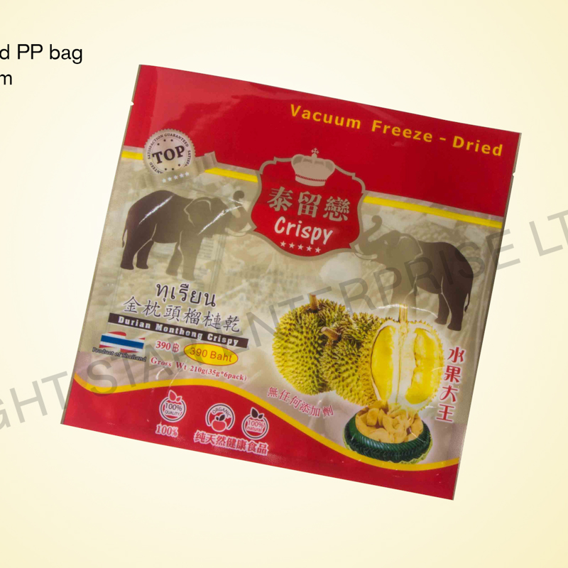 This food packaging bag is rendered in bright colors to stand out on shelves. It is made of plastic materials for a durable construction and a long service life. Reliable and practical, this food packaging bag is perfect for a wide variety of retail purposes.