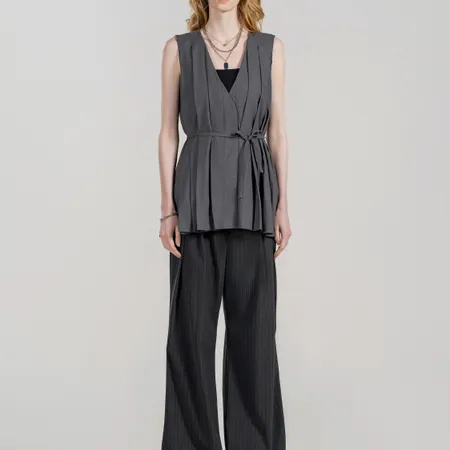Ladies' 70% Polyester 26% Rayon 4% Spandex Collarless Pleated Vest