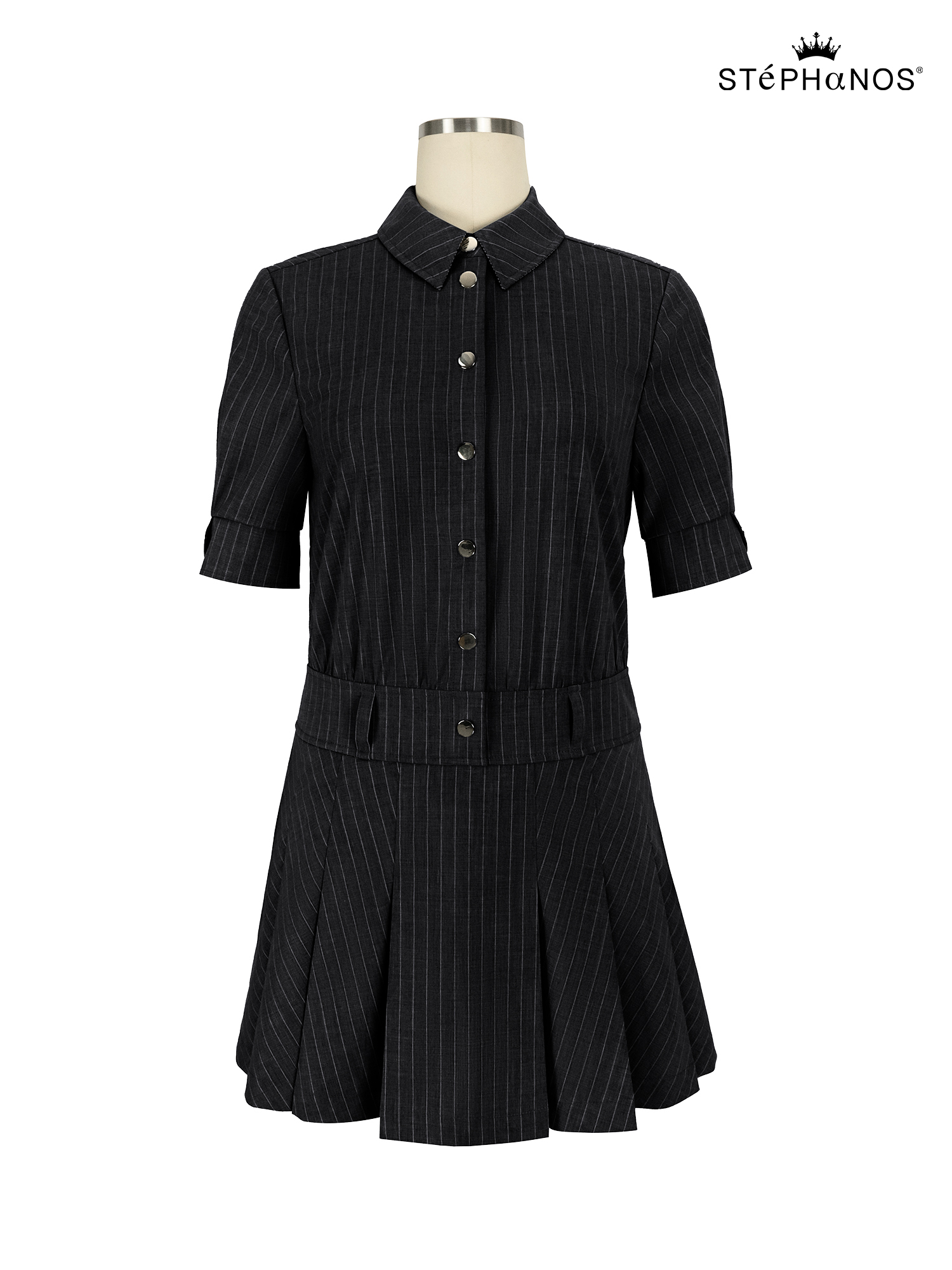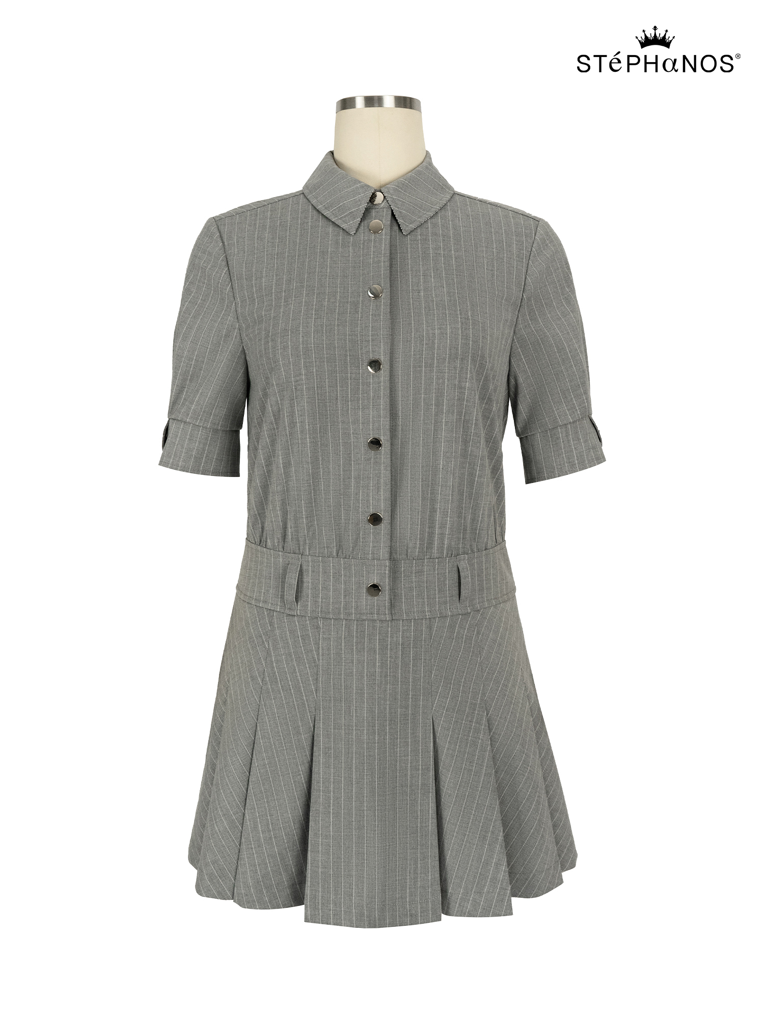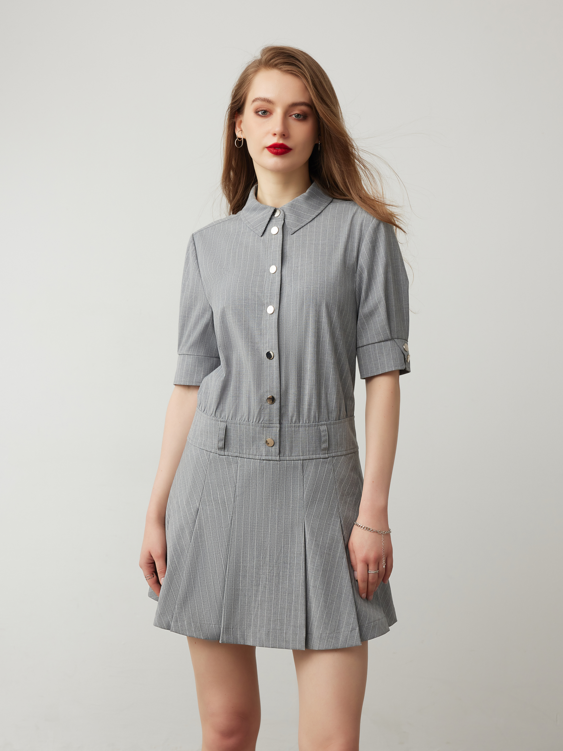 Ladies' 69% Polyester 29% Rayon 2% Spandex Woven Shirt Pleat Dress