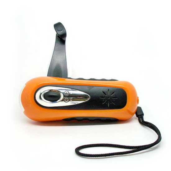 This compact and rugged dynamo flashlight can generate power by rotating the handle. It is fitted with three high-power white LEDs for superior lighting effects. The versatile LED flashlight is also equipped with an FM single-band radio.